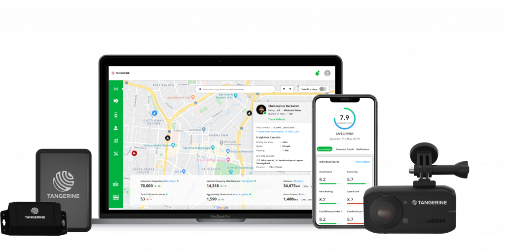 The Tangerine’s built-in and advanced AI enables you to solve and overcome the limits of human capacity. With the help of Geofence perimeter, notifications are triggered the moment any of the assets breach the fleet safety rules. The AI-powered dashcam is integrated with Sense+ device to provide a next-generation fleet intelligent monitoring system. With most of the built-in advanced features, the camera captures all incident videos and uploads the same to the Cloud server for automatic analysis. With more actionable insights, Tangerine’s Fleet management provides one of the best solutions for safety, productivity, and increases the overall efficiency of fleets.